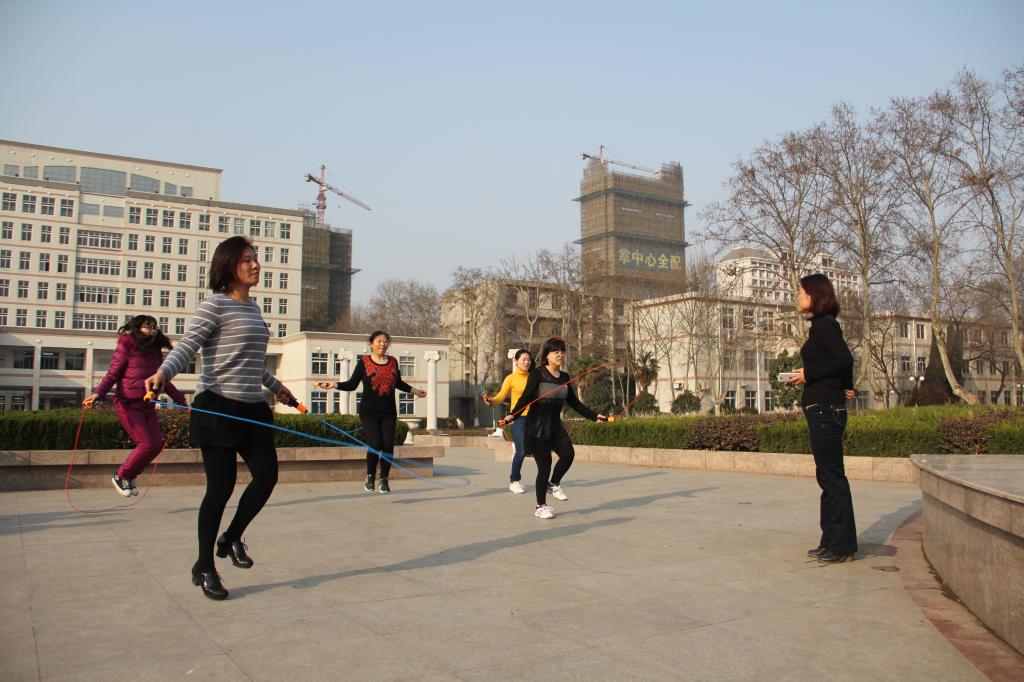 为庆祝国际“三八”妇女节,3月3日下午,土木建筑学院工会在学校喷泉广场组织开展了跳绳比赛活动。