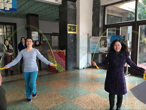 为丰富职工业余文化生活,强化健身意识,3月3日下午,医学院在西校区行政楼大厅举办了庆祝“三八”妇女节教职工跳绳比赛。